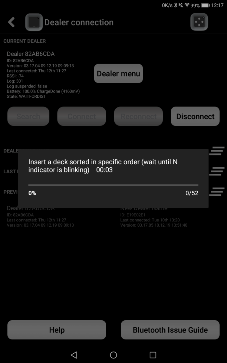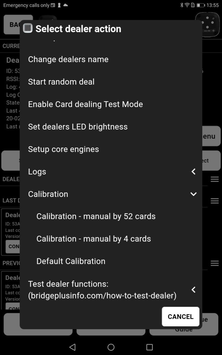 To do a thorough calibration of the Bridge+More dealer with 1 * 52 cards please follow the instructions below: