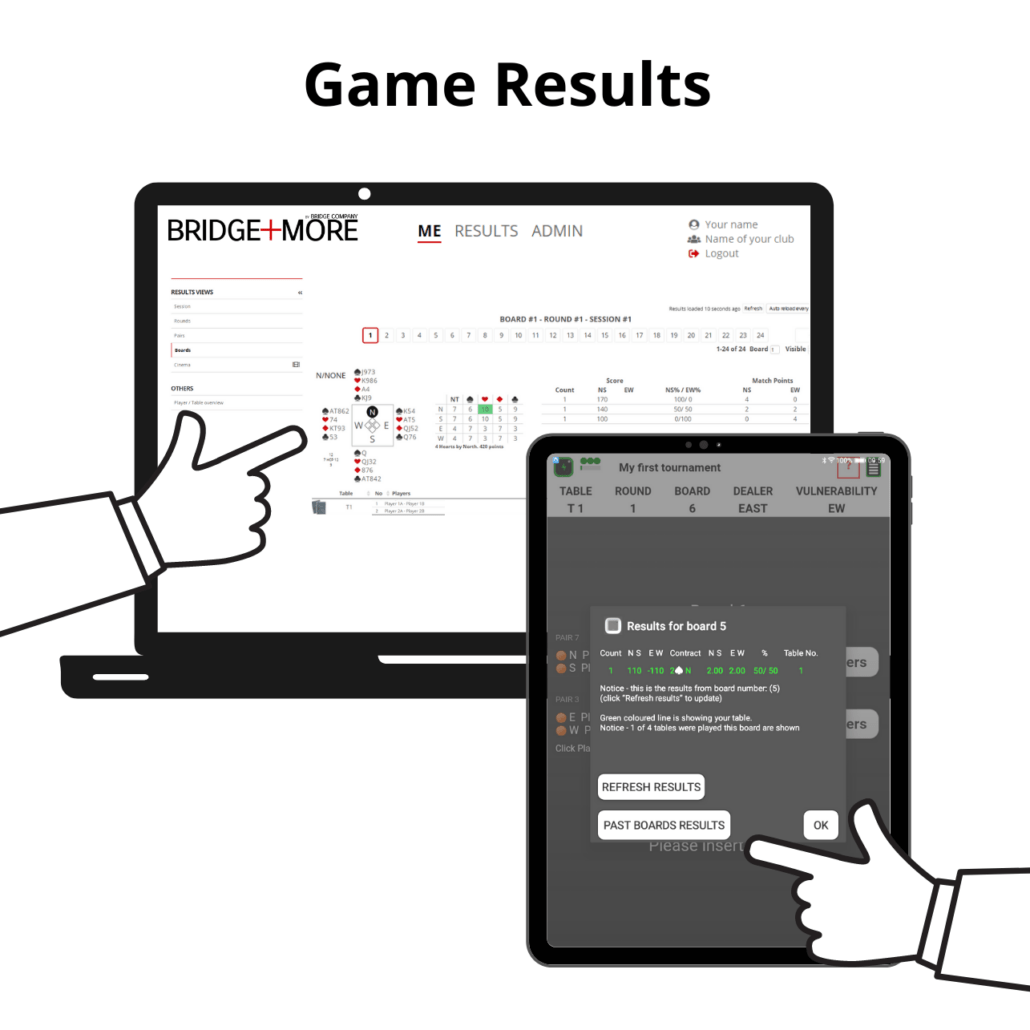 After a game of bridge, you will have the opportunity to study and compare your results on your bridge+more server account. With the Bridge+More Solution, you will have access to detailed game results from every board, session, round, and each player.