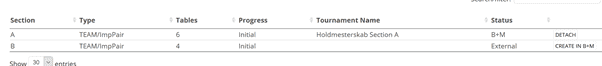 To play the tournaments in B+M, you will create B+M tournaments from each section you want to play. This is done by pressing “CREATE in B+M”. You will be led through the normal tournament definition – slightly reduced, as some of the information about the dimensions and type has already been read.