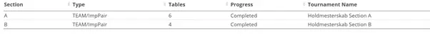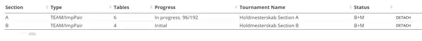 Now it’s time to play some bridge. Once you have finished a board, you will see that the status changes from “Initial” to “In progress”. Here 96 of 192 results are ready in section A – B has not yet started playing.