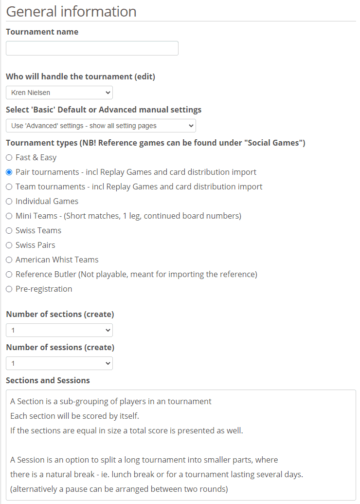 Notice – “If you would like to import a card distribution you have on a file then select Random and then after the tournament have been created select each session and select the file to import” – hereby we offer an option to import for example a BRI file with your card own distribution.