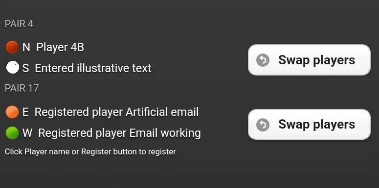 - A player registered with an artificial email will appear with an orange dot on tablets and in the web server’s player list.