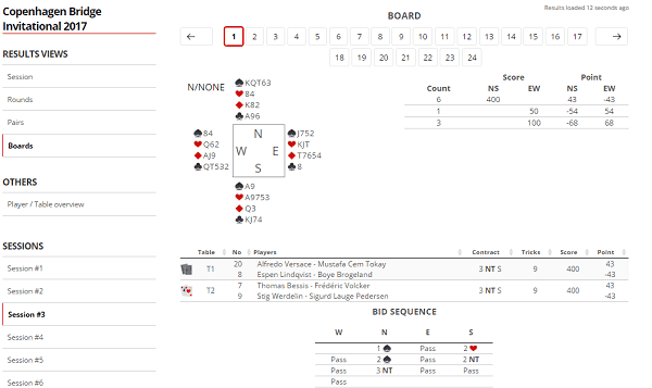 Notice, if you try to select the presentation of results from boards or rounds not played yet you are welcome – but we keep the information hidden until we should present it – likewise with card distribution details.