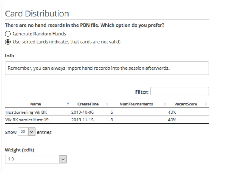 In this example, there were no hand records in the import file. If your purpose is just to add it to a Point Series, that may be fine. You don’t need the hand records, just the results. In that case, we suggest using the “Sorted Cards” option to avoid confusion, if someone looks at the tournament results.