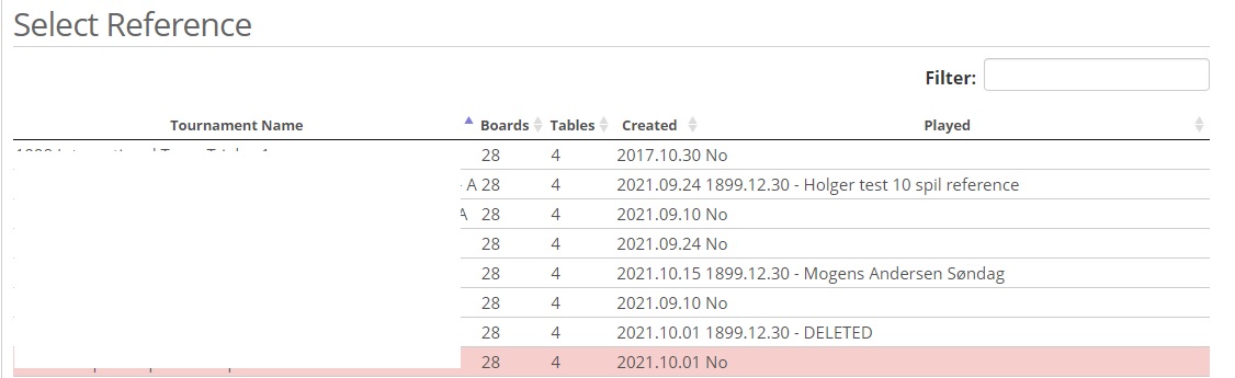 As shown below – you can also see, when creating a reference game, if a reference source has been played or not (No), if played (name of game is shown) or deleted.