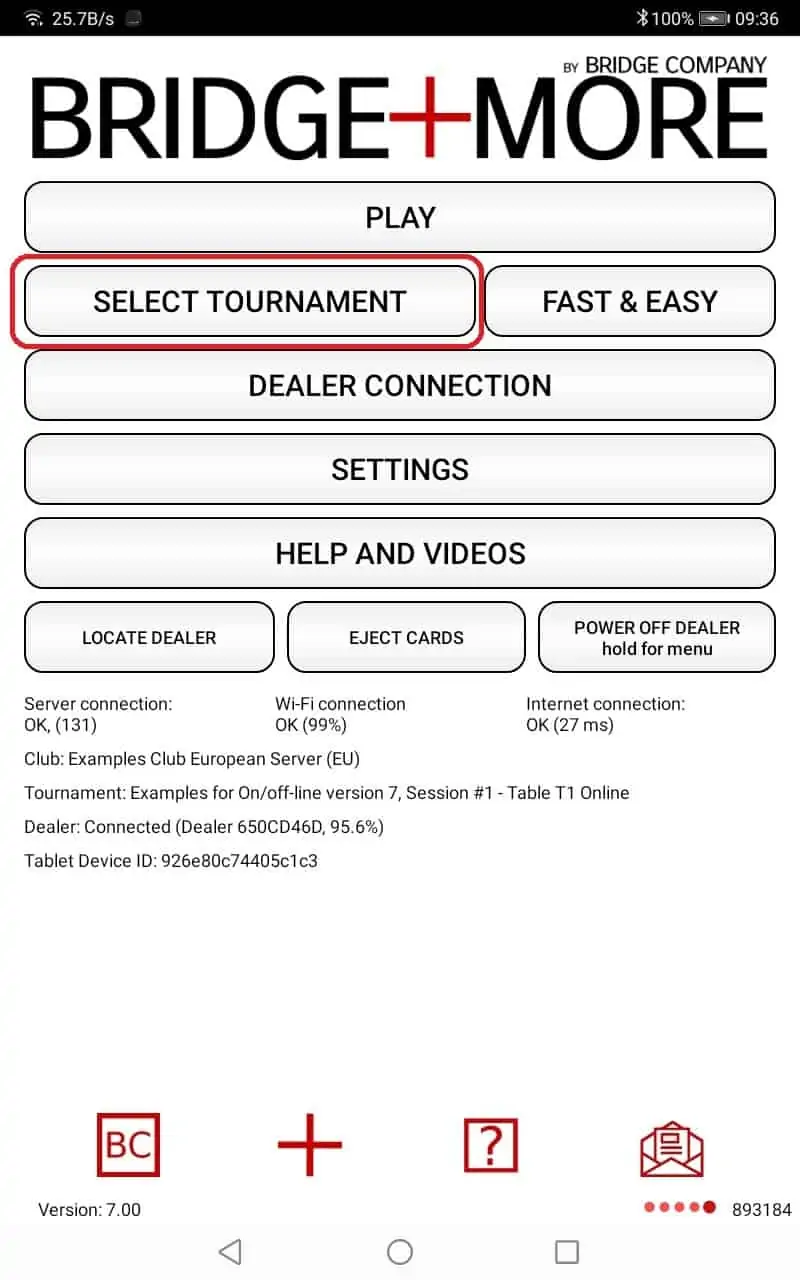 First you need to select the tournament you want to play – on the Bridge+More tablet.