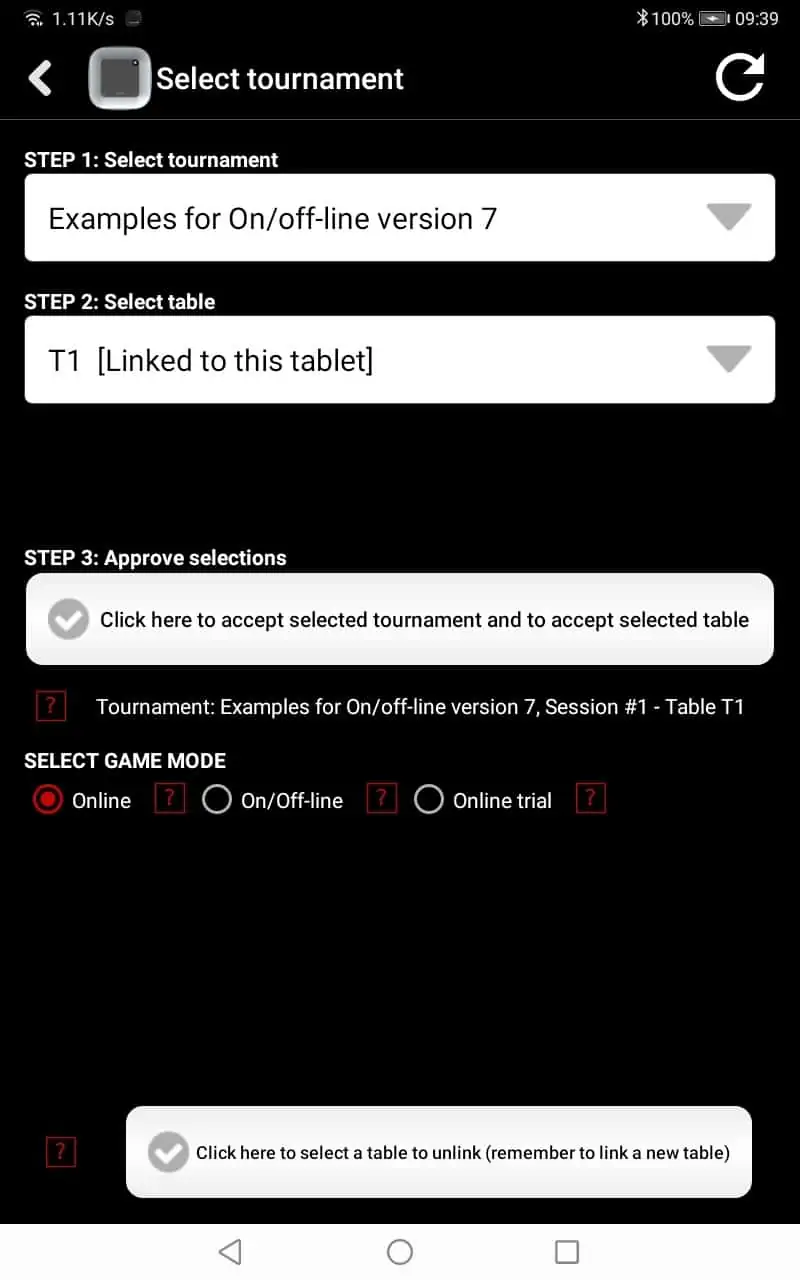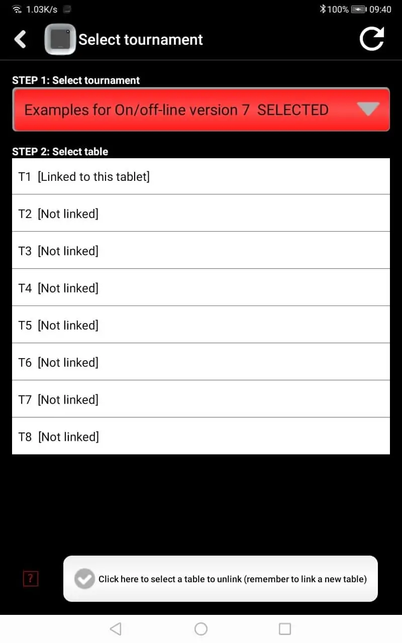 Select “Tournament table” on the tablet apps main menu