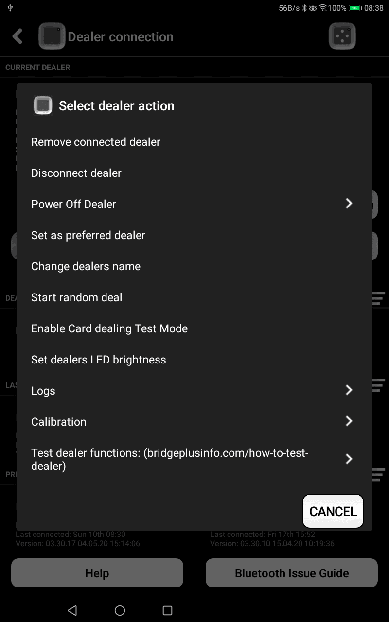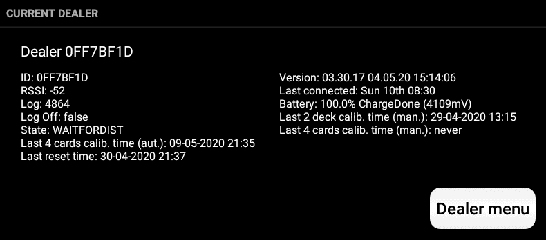 Please notice you either have to stop dealing mode like you started it (select “Stop test mode”) or turn the dealer off and on.