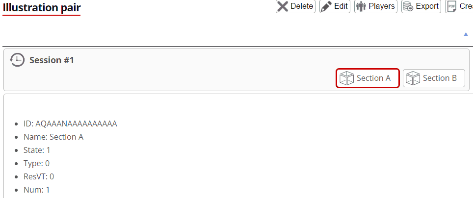 Below the top menu bar you will see a number of (at least one) Sessions. The session overview also shows the number of Sections in the session.