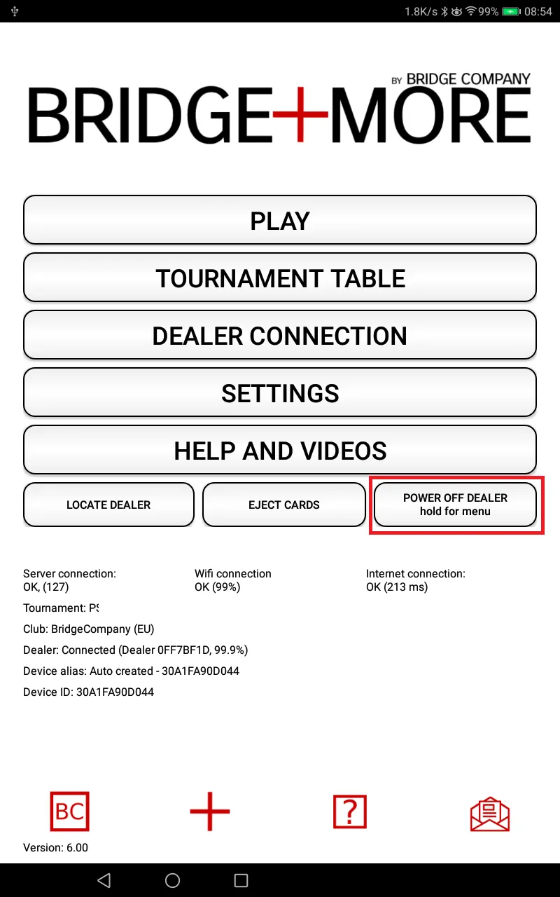 Bridge+More – How to turn the Bridge+Dealer Off – On the tablet