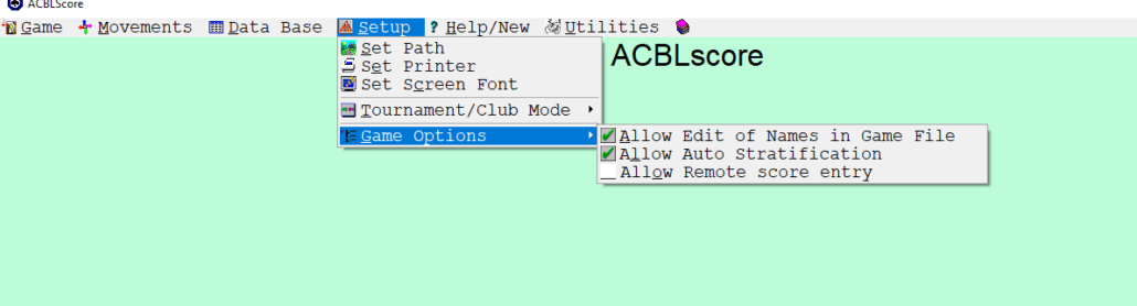 Assuming you have set up a tournament in ACBLScore – Enable this section for remote (“BME” in the menu above).