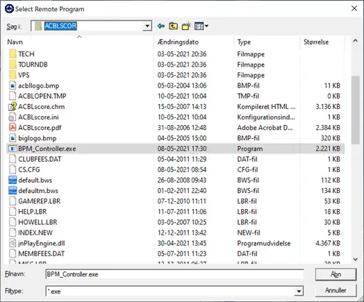 - Select BMP_Controller.exe as “Remote Program” by telling ACBL Score where it is located on your computer