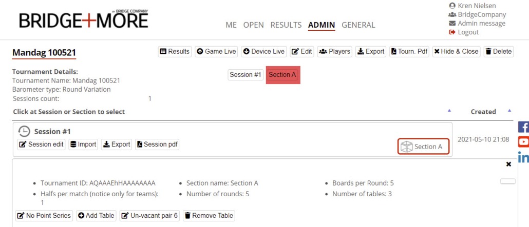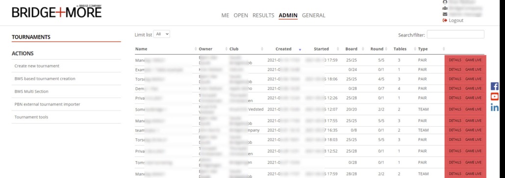 This guide shows you how to manage the tournament/games after you have created it – see how to create a tournament here (links covers pair tournament – but include links to other tournament types)