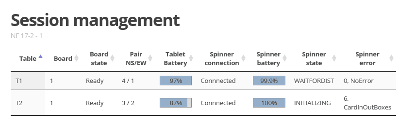 The tablet shows – “Wait for session start” (first round) or “Wait for session start” (later rounds) – hereby showing the Bridge+More solutions is ready for the moment the tournament director wants to start the tournament.